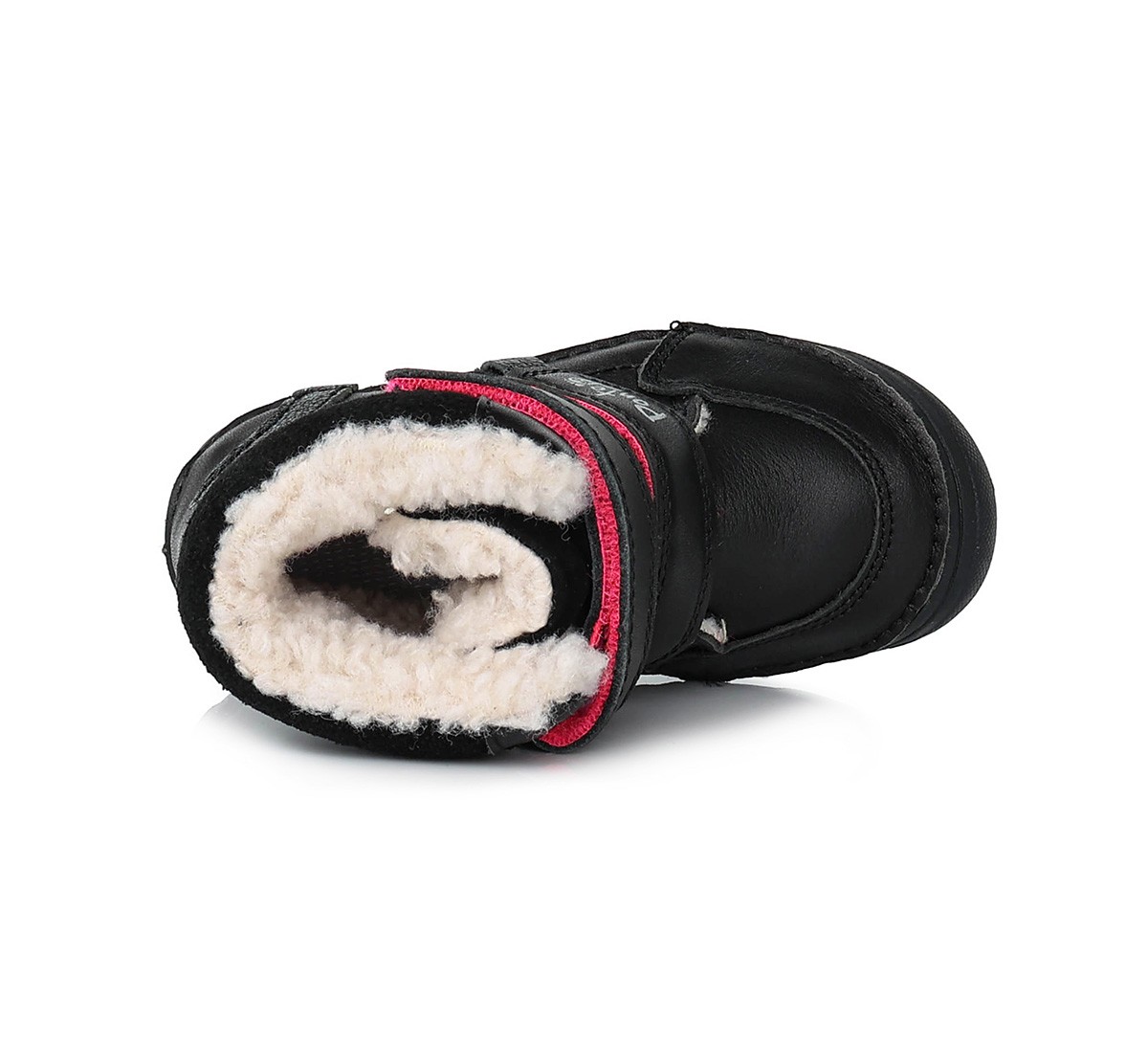 Juodi batai su dirbtinio kailio pamušalu 24-29 d. DA07-3-128C. Gamintojas – Ponte20 (Vengrija). Batai vaikams.