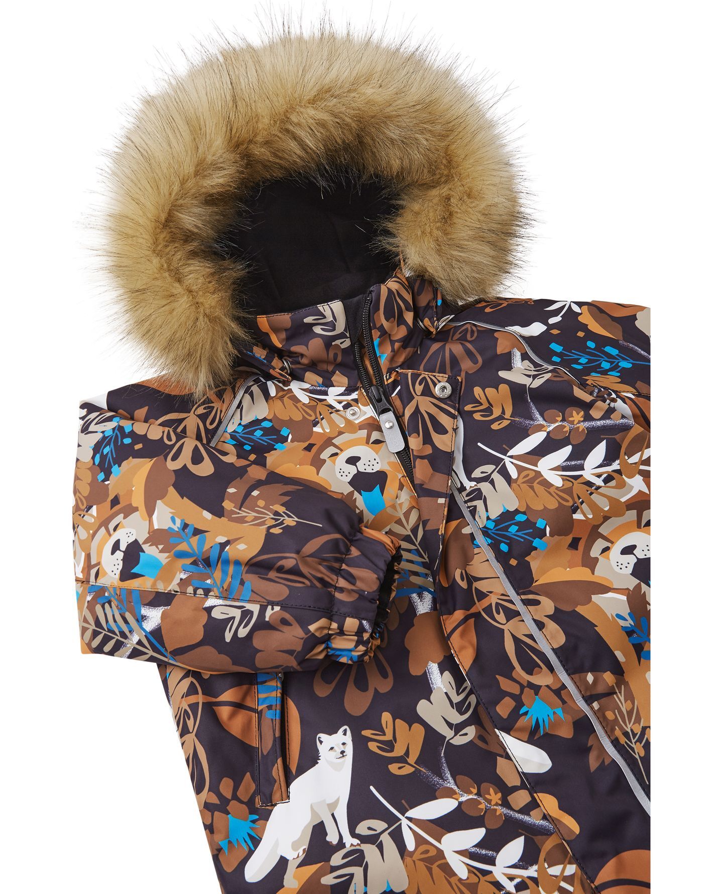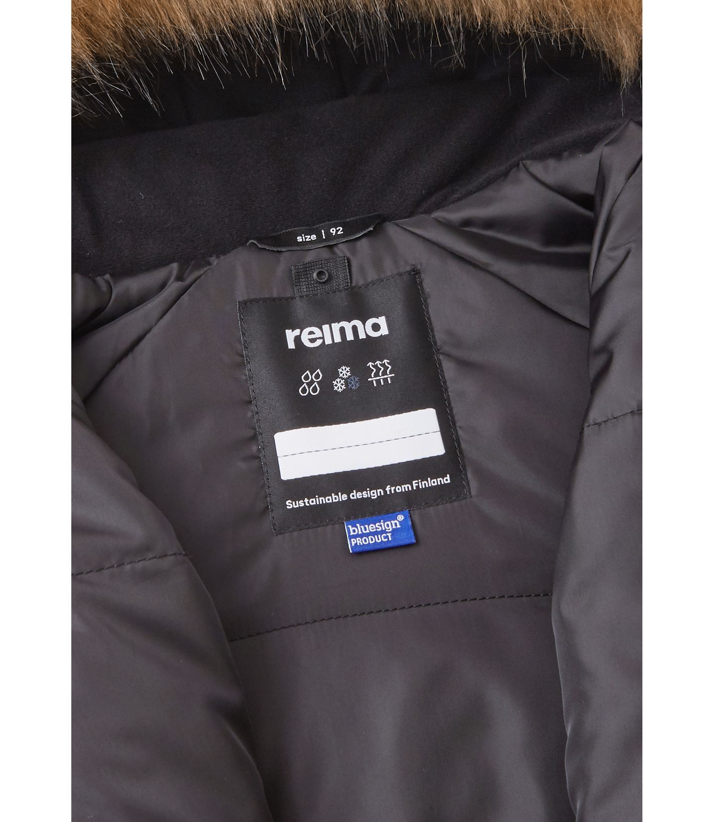 **Saugumo funkcijos** – Ypatingas dėmesys skiriamas jūsų vaiko saugumui. Atsegamas ir reguliuojamas gaubtas su nuimamu dirbtinės kailio apvadu yra visiškai saugus mažiesiems žaidėjams. Jei gaubtas užsikabina už kažko, jis lengvai atsegama spaudžiamaisiais mygtukais, taip išvengiant traumų ir nemalonių situacijų. Tai yra svarbi saugumo detalė, kuri skiriasi REIMA nuo kitų prekės ženklų.