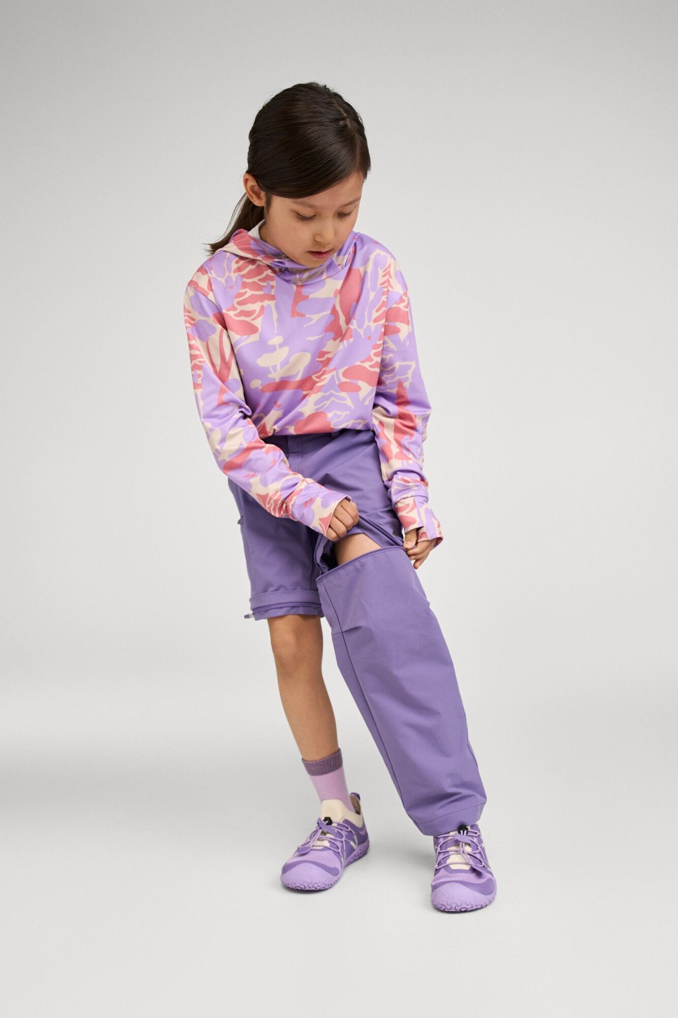 - Praktiškos funkcijos – reguliuojamas liemens plotis, užtraukiamos kelnių kojų dalys, kurios lengvai virsta šortais, ir užtrauktukas kišenėje užtikrina maksimalų komfortą ir funkcionalumą.