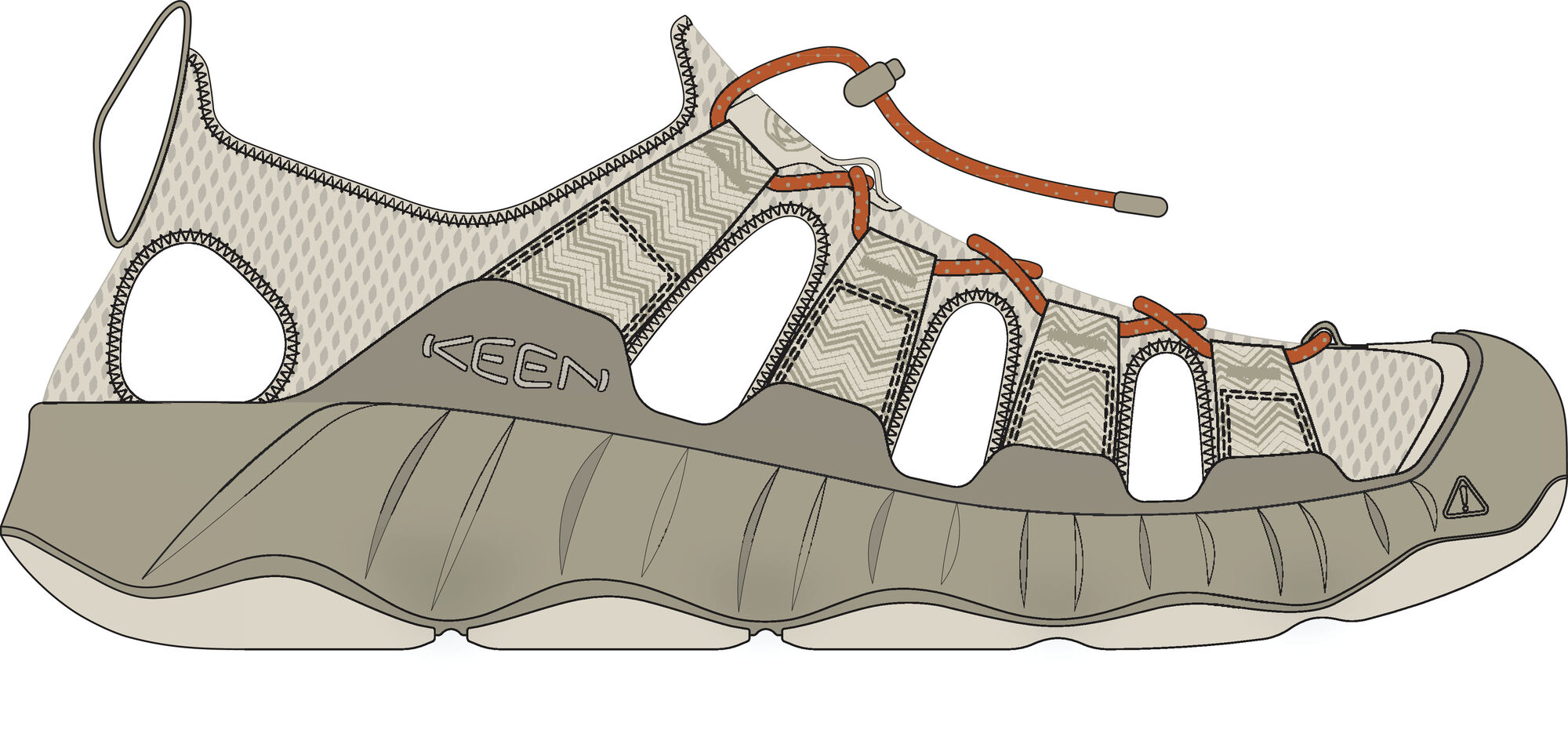 Keen – tai prekinis ženklas, kuris jau daug metų rungiasi dėl lyderio pozicijos sportinės ir laisvalaikio avalynės rinkoje. Šios sandalos – tai keletas metų patirties ir inovacijų viename produkte. Gamintojas naudoja tik aukščiausios kokybės medžiagas, kurios užtikrina ilgaamžiškumą ir patikimumą net intensyviausiai naudojant.