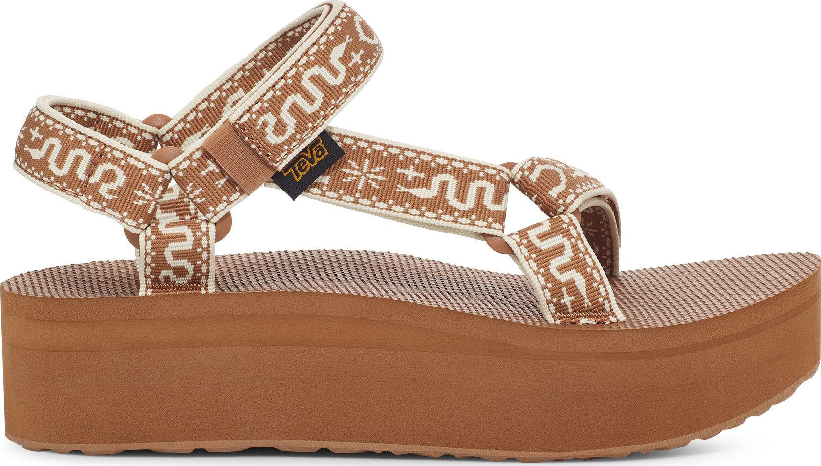 Teva FLATFORM UNIVERSAL WOMEN'S – Bandana Lion bateliai: stilinga 1.75 platforma su perdirbto REPREVE dirželiais, formuota EVA tarpine ir gumuotu padu. Veganiškas, antimikrobiškai apdorotas modelis užtikrina komfortą ir gaivumą visą dieną. Ribotas kiekis – įsigykite dabar ir ženkite tvirčiau kiekvieną žingsnį.