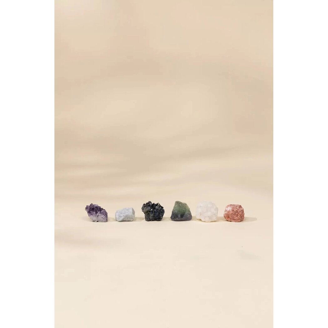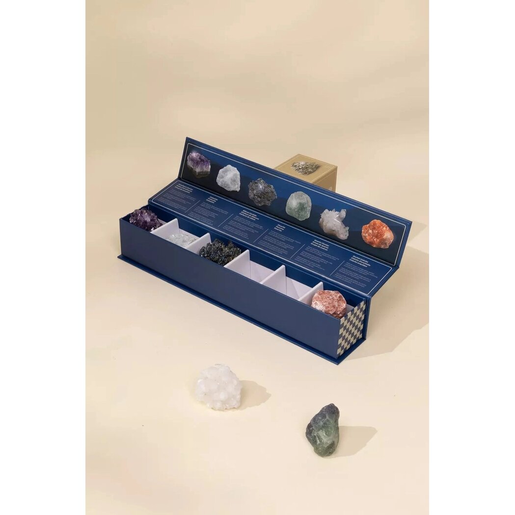 Šiame 6 kolekcinių mineralų rinkinyje rasite tikrus, natūralius akmenis, pasižyminčius unikaliomis tekstūromis, formomis ir spalvomis. Nuo raminančio ametisto violetinio atspalvio iki žėrinčio silicio karbido paviršiaus – kiekvienas mineralas turi savo išskirtinį charakterį ir pasakoja savitą istoriją.