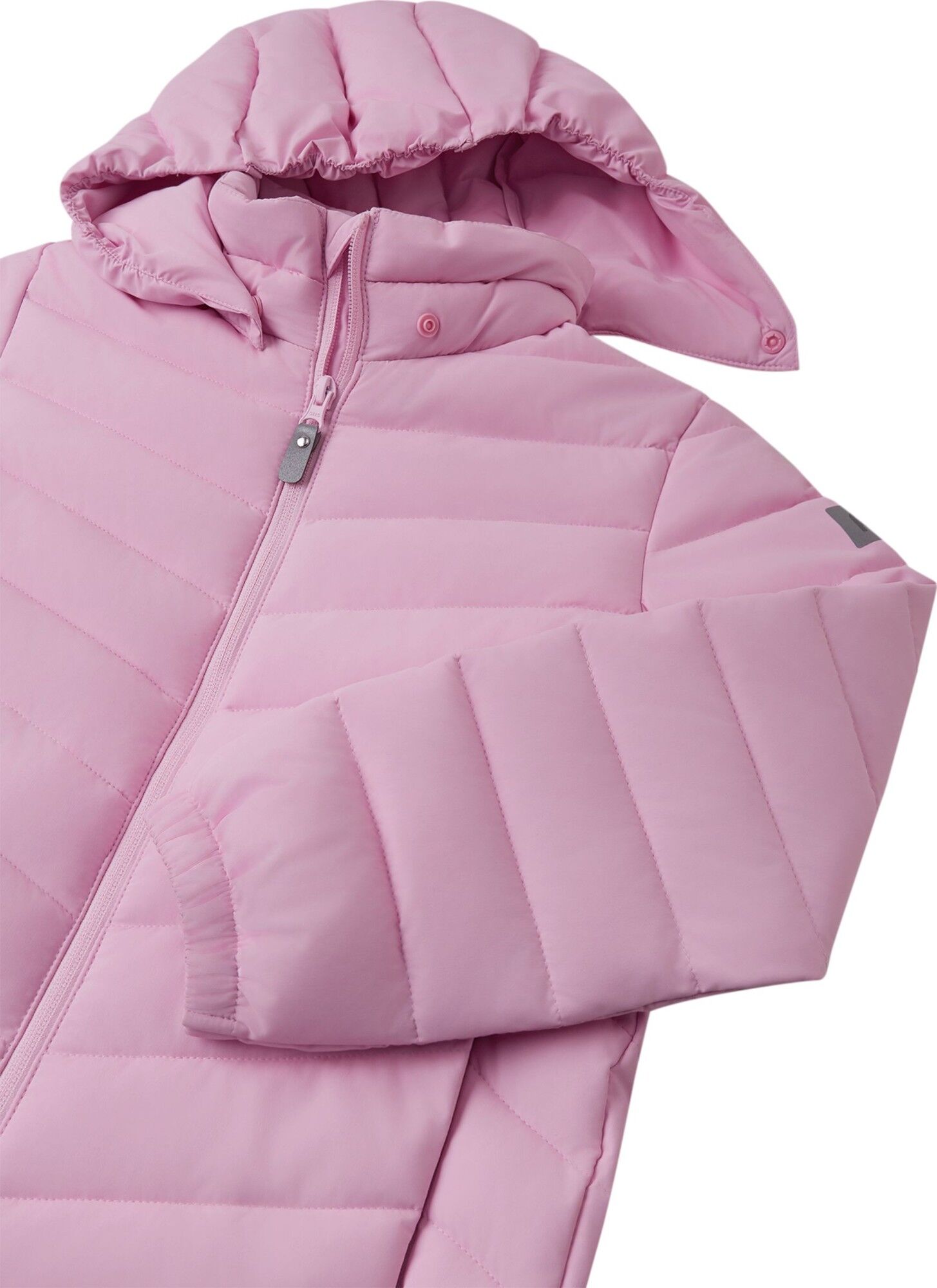 - Saugiai atsegamas gobtuvas – apsaugo nuo vėjo ir lietaus, o prireikus greitai atsegamas, jei vaikui tampa per šiltai arba reikia greitai išlipti iš striukės.