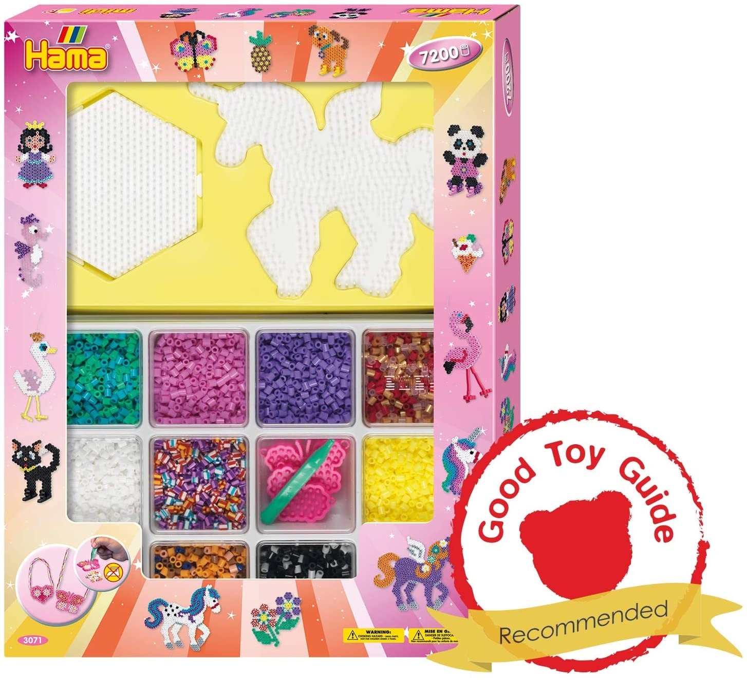 . Šis rinkinys – tai nepaprasta 2019-ųjų metų HAMA karoliukų naujiena. Viduje prie jau įprastų karoliukų dėliojimo lentelių, rasite specialią lazdelę ir 2 karoliukų dėliojimo formeles, ant kurių sudėtų karoliukų nereikės lyginti lygintuvu. Šis užsiėmimas padeda vystyti vaikų kūrybingumą bei smulkiąją motoriką bei suteikia valandas trunkantį žaidimo džiaugsmą.