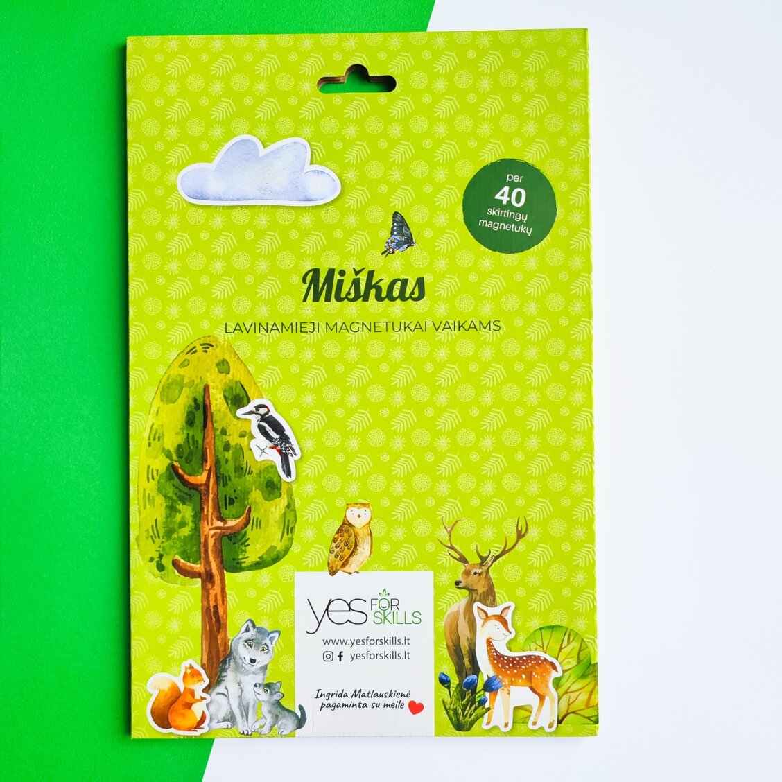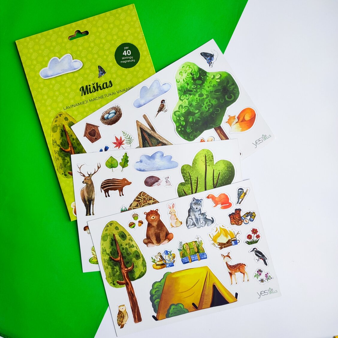 Žaidžiu ir mokausi su Yes For Skills lavinamaisiais magnetukais vaikams! Įženkite į miško pasaulį su magnetukų rinkiniu „Miškas“ pagalba. Užuoskite miško kvapą, skirtingų gėlių aromatus, prisėskite ant kelmo, įsidėkite gilę į kišenę, išgirskite paukštelių čiulbėjimą, atsargiai rinkite grybus, padainuokite dainą prie laužo, nusiaukite drėgnus batus, pastebėkite baikščią stirną, o gal sutiksite pavojingą mešką? Pasiduokite vaizduotės vedimui, žaiskite, bendraukite ir tokiu būdu lavinkite kūrybiškumą, loginį mąstymą, emocinį intelektą, kalbinius įgūdžius. Neįsivaizdavote, kad magnetukai gali tapti linksmu žaidimu, vienijančia visą šeimą pramoga? Panirkite į šį nuotykį ir patirkite istorijų kūrimo galią. Tegul vaikų ugdymas tampa smagia pramoga tiek tėveliams, tiek atžaloms.