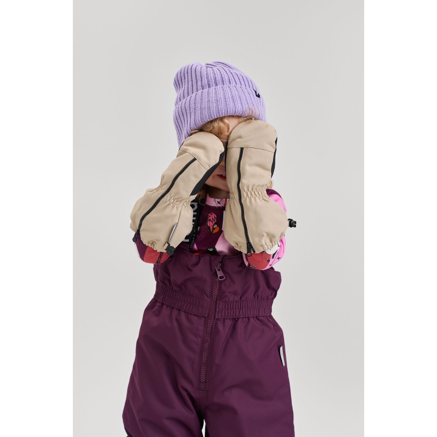 - Lengvas užmovimas – ilgas užtrauktukas ir ergonomiškas dizainas leidžia greitai ir be streso užmauti pirštines net judriausiems mažyliams.