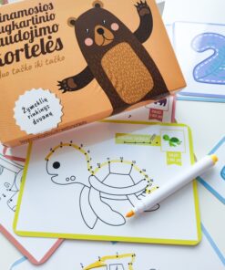 Lavinamosios daugkartinio naudojimo kortelės „Nuo taško iki taško” + žymeklių rinkinys dovanų