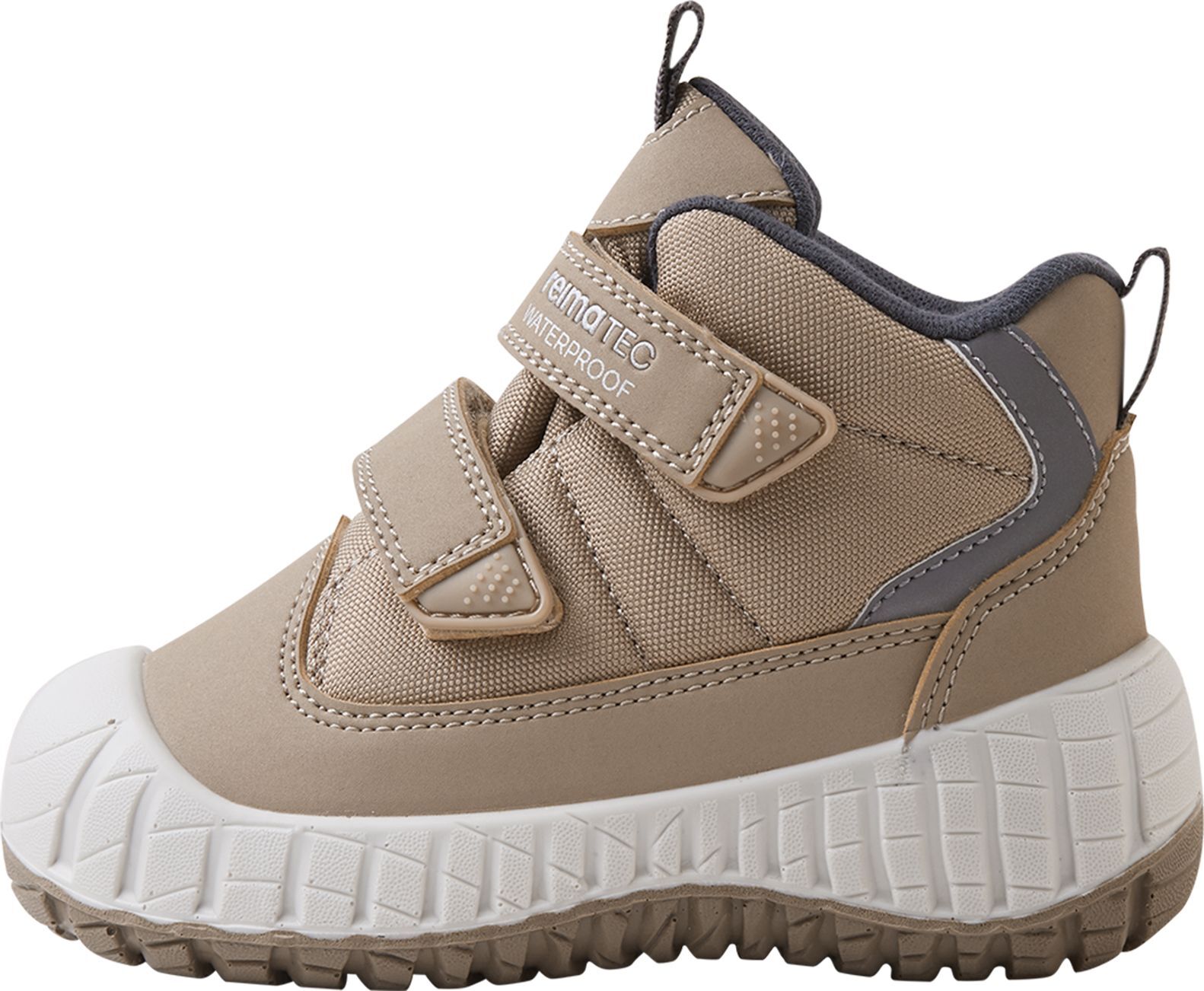 REIMA Passo 2.0 – vandeniui atsparūs vaikiški bateliai, kurie nebijo nei balų, nei sniego! Lengvi, lankstūs, veganiški, su „Happy Fit“ dydžių žymomis ir greitu lipuku. Universalus Earthy Beige atspalvis derės prie kiekvienos aprangos. Užtikrinkite sausas ir šiltas mažylio pėdas – įsigykite dabar!