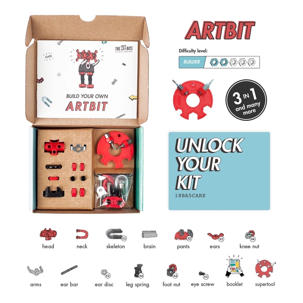 ArtBit – puikus papildymas edukacinių žaislų asortimentui, suteikiantis vaikams neribotas kūrybos galimybes. Šis inovatyvus DIY robotų konstruktorius leidžia sukurti mažiausiai tris skirtingus modelius, o pasitelkus vaizduotę – dar daugybę kitų. Derindamas klasikines „atsarginių dalių“ formas su šiuolaikišku, pritaikomu dizainu, ArtBit skatina kūrybišką konstravimą ir išsiskiria tarp kitų konstruktorių.
