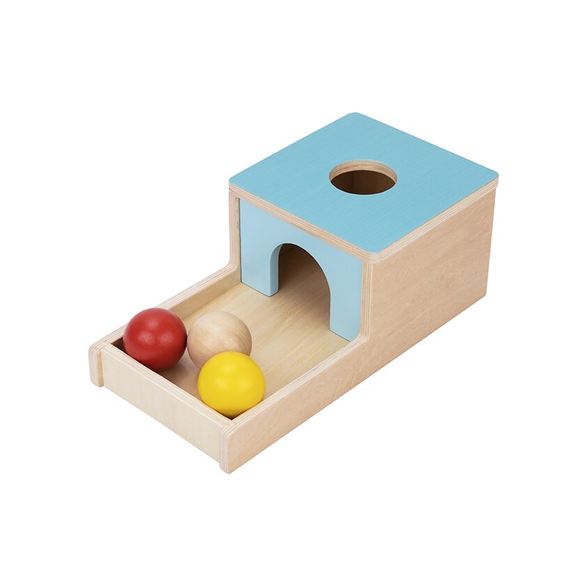 Šis Montessori edukacinis rinkinys skirtas aktyviam kūdikio pažinimui, smulkiosios motorikos, rankų–akių koordinacijos ir loginio mąstymo lavinimui 7–12 mėnesių amžiuje.