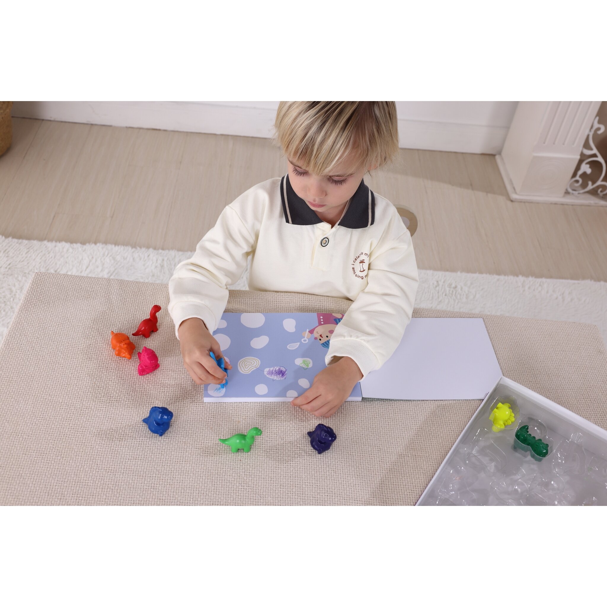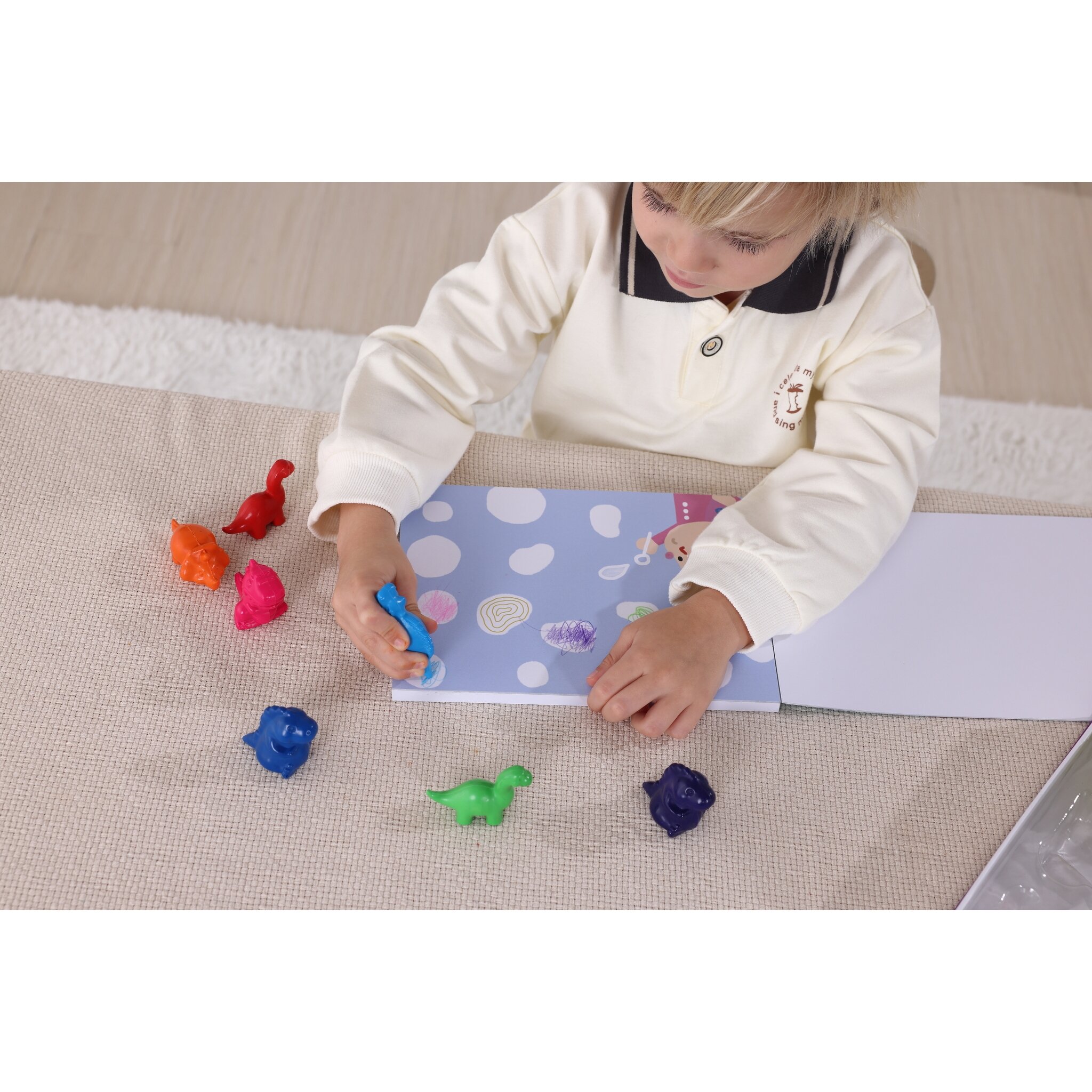 Leiskite vaikui atrasti spalvų pasaulį su smagiuoju Tookyland dinozaurų vaškinių kreidelių rinkiniu. Šis kūrybinis rinkinys sujungia spalvinimą ir žaidimą – vaikai gali kurti savo pirmuosius meno darbelius naudodami ryškias, dinozaurų formos vaškines kreideles.
