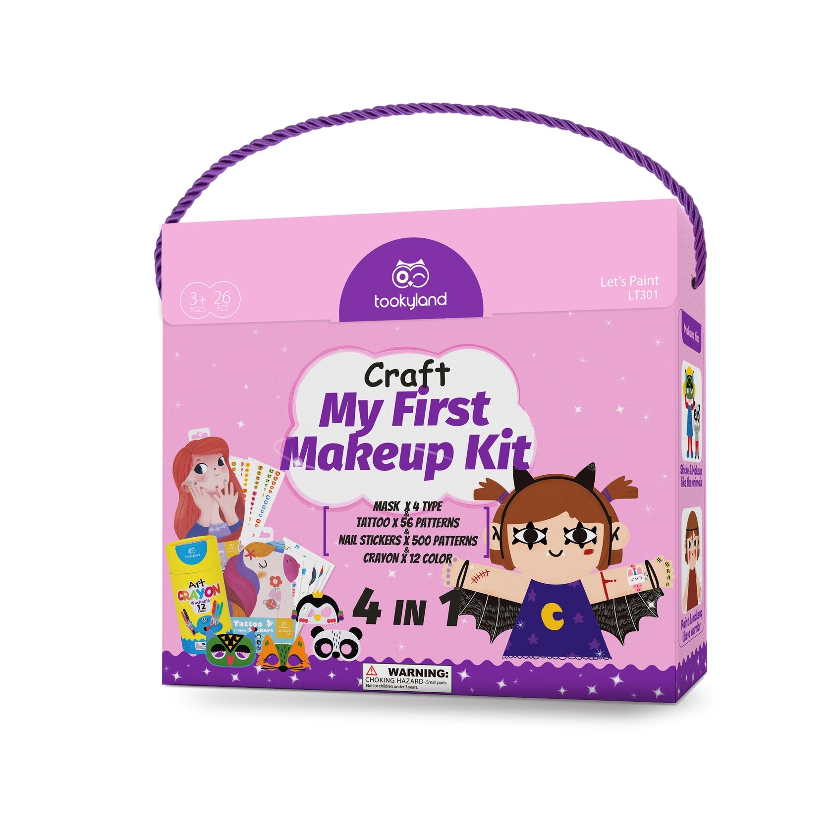 Tookyland kūrybinis makiažo rinkinys su 4 kaukėmis, 56 tatuiruotėmis, 500 nagų lipdukų ir 12 išplaunamų kreidelių (LT301)